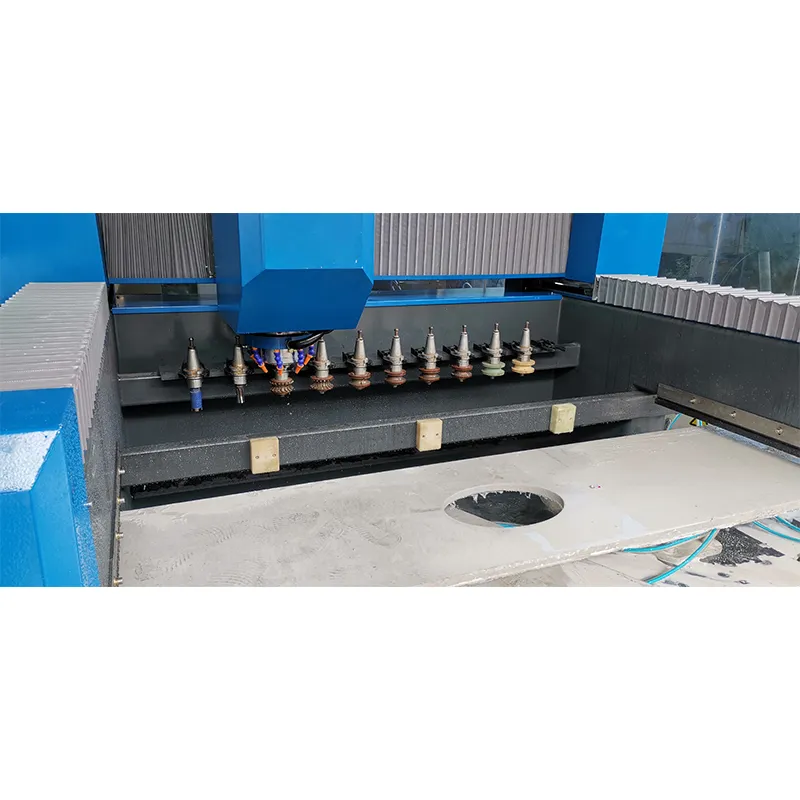 HLCNC-1308 Plus — это компактный 3-осевой обрабатывающий центр с ЧПУ и встроенной системой автоматической смены инструмента, предназначенный для резки, профилирования и полирования каменных столешниц.
