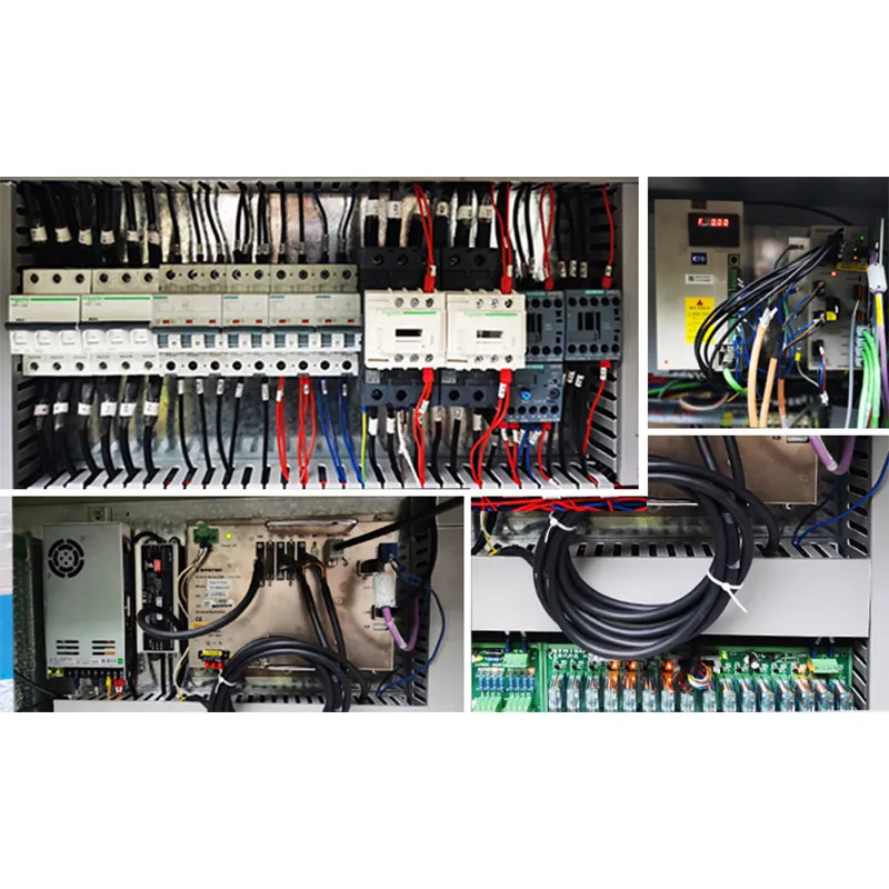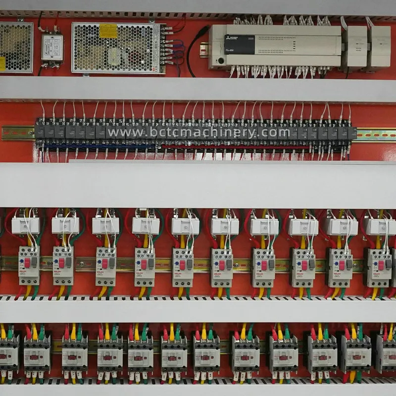 Все электрические компоненты установлены в электрическом шкафу и профессионально подключены, что значительно облегчает ежедневные работы по проверке и техническому обслуживанию для клиентов. Вся проводка четко маркирована, чтобы клиенты могли легко и быстро получить доступ к информации внутри электрического шкафа, когда им необходимо обслужить машину.