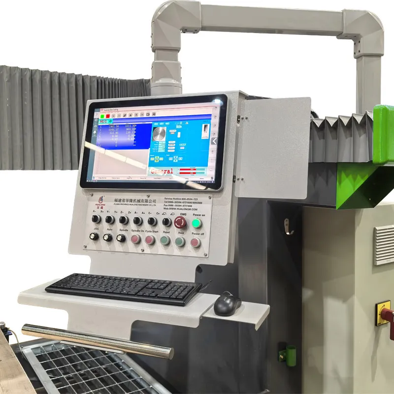 5+1-осевой мостовой станок с ЧПУ добавляет возможности фрезерования на основе стандартной пятиосевой модели, поддерживая операции сверления и обработку линий любой формы (включая веерообразные пластины, формы краев раковин и т. д.). Устройство использует высокоточные линейные направляющие, шарико-винтовой привод и маслопогруженные направляющие механизмы, отличающиеся высокой точностью и стабильностью, а также функцией памяти при отключении питания.